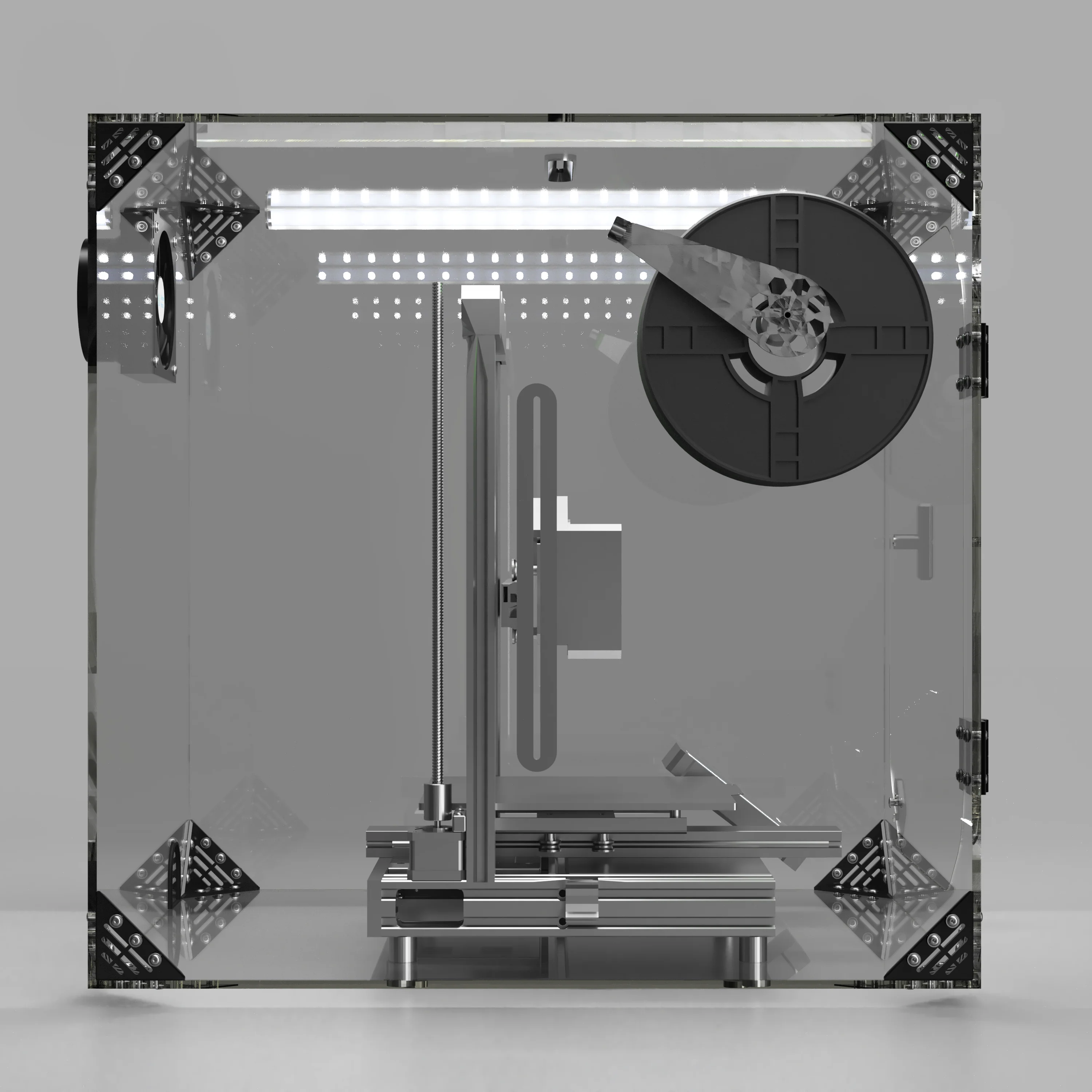 Our enclosures include the panels, hardware, and printable parts that you need for assembly. We have set up an option set to include a range of accessories and printed parts kit as well. An enclosure with 1/4" panels, a hepa/charcoal exhaust filter, and the heavy duty metal hardware kit are our recommendation for a great setup.